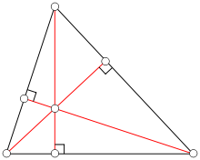Trójkąt oraz jego wielkości przecinające się w tzw. ortocentrum.